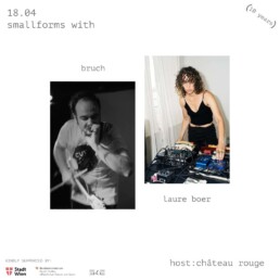Dates smallforms w/ Laure Boer x Bruch @19.30 – 18/04/2026 Join us at Chateau Rouge for an explosive evening ! @7pm smallforms w/ Dana Schechter & Paul Wallfisch x Silvervest x Sebastian Bauer @19.30 – 06/12/2025 smallforms w/ Adelita Escapes & Jul Dillier x Marilies Jagsch & Manuel Riegler @19.30 – 01/11/2025 smallforms w/ Schrader & Schrader x TWO DOGS (Beat Keller & Joke Lanz) @19.30 – 10/10/2025 smallforms w/ Christian Reiner x Nicholas Hoffman & Laura Pudelek @19.30 – 20/09/2025 smallforms w/ Bromp Treb x SrslyWow (Sofia Salvo/Guido Kohn/Margaret Unknown) @19.30 – 06/06/2025 smallforms w/ Ghostpoet x Susanne Brokesch @19.30 – 10/05/2025 smallforms w/ Carolooo000 x Pete Prison IV & Alex Kranabetter @19.30 – 26/04/2025 smallforms w/ Hylut x PΞB x Jukebox Utopia @19.30 – 16/11/2024 Ausstellung von Assl & (JG)Fän vom 21. bis 26. Mai 2024 SMS means…… @18.30 – 17/05/2024 smallforms w/ Margit Gruba x Devin Gray @19.30 – 09/03/2024 SMS means…… @20.00 – 01/03/2024 Renaissance @19.00 – 23/02/2024 smallforms w/ Roy F Culbertson III x Chonglian Yu & Tian Fu @19.30 – 16/12/2023 smallforms w/ Duo Hofmaninger/Schwarz x Gunship Collider @19.30 – 11/11/2023 SMS means…… @19.30 – 03/11/2023 smallforms w/ RENT x lentsi biografie (nina bauer, johanna schlömicher) @19.30 – 22/09/2023 smallforms w/ Jaka Berger x agar agar (Martina Moro & Fabian Lanzmaier) @19.30 – 28/04/2023 smallforms w/ Hypersurface – Drew Wesely / Lester St. Louis / Carlo Costa (NYC) x DJ Ford Escort @19.30 – 24/03/2023 smallforms w/ Nebbia Rainer Togander TRIO x Julia Just @19.30 – 24/02/2023 smallforms w/ Stina Fors x Sebastian Klingovsky x Wiesinger/Nykrin/Koenig @19.30 – 10/12/2022 Salon Souterrain 2022: Art, Music & Degustation (and a zest of Love) – 16 december 2022 @7pm, Château Rouge smallforms w/ Simone Borghi x Brigitta Bödenauer x éclair (Katharina Klement & Daniel Lercher) @19.30 – 19/11/2022 smallforms w/ M.O.G. (MOTHERS OF GOD) x Christian Schröder & Charlotte Jefferies x Rent @19.30 – 22/10/2022 smallforms w/ bosse&soulimenko x Monica Vlad @19.30 – 23/09/2022 Smallforms w/ Glam x Katharina Schmidt @19.30 – 24/06/2022 Possessed / Liberated @19.00 – 09/06/2022 Smallforms w/ Julian Siffert x Monica Vlad @19.30 – 28/05/2022 Smallforms w/ Lara Alarcón & Renata Daguerre x Palmovka @19.30 – 23/04/2022 Smallforms w/ Sturmherta x Matte/Glossy @19.30 – 25/02/2022 Smallforms w/ B.AND FLEISCHMANN x LDY OSC x AUSBRUCH TEEN @20.00 – 01/10/2021 Smallforms w/ Reni Hofmüller x SERVIERVORSCHLAG @20.00 – 04/09/2021 Smallforms w/ Dino, Spiluttini/Stritter @20.30 – 02/07/2021 Smallforms w/ Voiler x dieb13 @20.30 – 22/08/2020 XX ART Flânerie : Château Rouge @19.30 – 17/07/2020 XX ART Flânerie @17.00 – 10 au 18/07/2020 Smallforms w/ Manu Mayr x Mayr vs Birgit Michlmayr @20.30 – 26/06/2020 Smallforms w/ ötonn x gebenedeit x guests: zastava/henao @20.30 – 13/03/2020 Smallforms w/ Christian Schröder x Gischt @20.30 – 13/02/2020 Info Event – Call for Projects 2020 @18.00 – 18/01/2020 Smallforms w/ Thomas Berghammer x Gran Bankrott @20.00 – 31/01/2020 Smallforms w/Tobias Leibetseder x Elizabeth Ward/Özgür Sevinç @20.00 – 06/12/2019 No Drama: Synchronous Acts of Silencing @18.45 – 23/11/2019 Smallforms w/ HALL x Stefanie Egedy @20.30 – 02/11/2019 Smallforms w/ Michael Fischer x Sirius Electrique @20.30 – 18/10/2019 Smallforms w/ Billy Roisz x Magnetoceptia @20.30 – 21/09/2019 Un séjour à Vienne – practice ball @21.30 – 20/09/2019 Salon Souterrain : Art & Prostitution : part 1 @19.30 – 02/08/2019 Butoh Imaginationen – Performance: Mushimaru Fujieda @20.00 – 25/06/2019 Smallforms w/ BAMM (Janka-Noise Picnoc-Flunger) x Hui Ye @20.30 – 08/06/2019 A L I C E – Performance, Art & Party @19.00 – 21/05/2019 und 22/05/2019 A L I C E – Performance, Art & Party @19.00 – 21/05/2019 und 22/05/2019 Smallforms w/ Susanna Gartmayer+Christof Kurzmann x verenasinn @19.30 – 24/05/2019 Salon Souterrain : Remember, 100 years of women right to vote… What about now? @19.00 – 11/05/2019 Smallforms mit Klaus filip & Bertrand Denzler x Benjamin Nelson @19.30 – 26/04/2019 Smallforms mit Jakob Schauer x DVRST @19.30 – 30/03/2019 OPERAtion NASE !!! @19.30 – 09/03/2019 Smallforms mit Sisko x Fabian Lanzmaier @19.30 – 25/01/2019 Festa de Luz@S @19.00 – 8/12/2018 Smallforms mit Stefan Nussbaumer x Polyxene @19.30 – 14/12/2018 Countryless and Queer: Rituals of Relatedness by Masha G @19.00 – 07/12/2018 Smallforms mit Paul Gründorfer/Ms Mutt x Rapchor @19.30 – 23/11/2018 Smallforms mit knuRRhahn x Onno Ennoson @19.30 – 12/10/2018 Smallforms mit Sarros x Donna Maya @19.30 – 21/09/2018 Salon Souterrain: 1ère édition @19.30 – 06/07/2018 Bakxai @19.30 – 27/06/2018 Operation Cockta @19.30 – 15/06/2018 Smallforms Two Years! Canned Fit & Petek x Fatalismus Spunk @19.30 – 14/06/2018 Smallforms Session mit B. Stangl und I. Forciniti x Mandy Mozart @19.30 – 11/05/2018